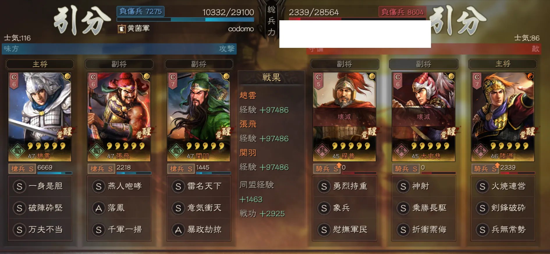 趙雲(破陣砕堅+臥薪嘗胆) 兵法書:以治撃乱+先制+将威 代替戦法:万夫不当