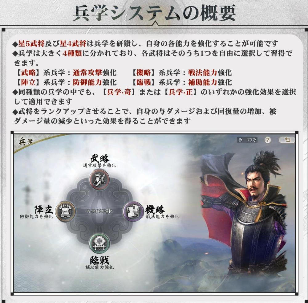ようやく兵学システムの情報が公開されたので、詳しく見ていきましょう。個人的にはS2で最も影響を与えるのはこの兵学システムだと思っています。特に課金差で編成強度に差が出てくる分野なのでしっかりとみていきましょう。