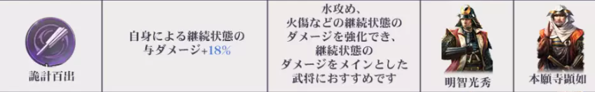- ダメージの発生が遅い(敵武将に付与→敵武将のターンにダメージが発生)