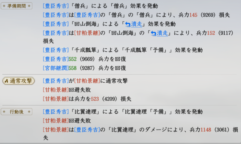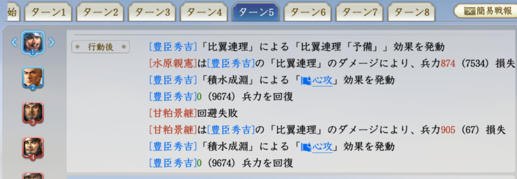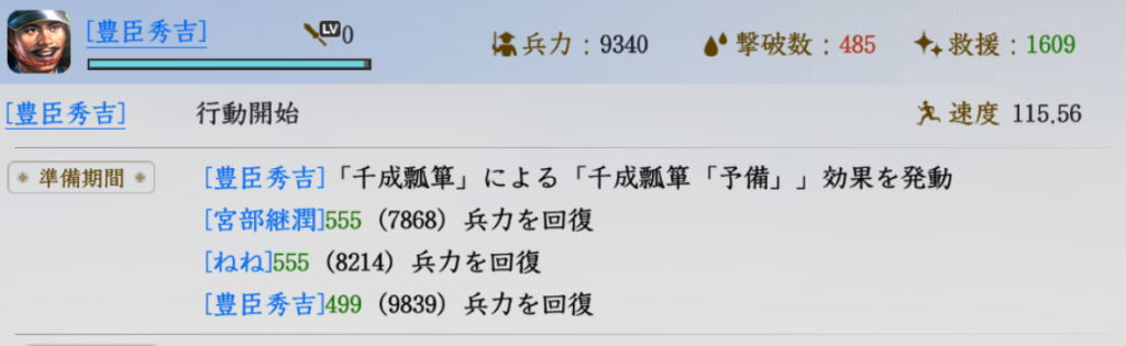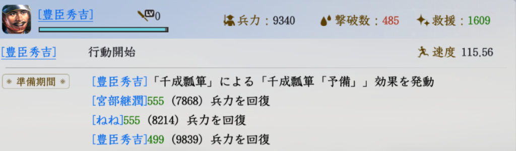 秀吉が大量回復した場合も見てみましょう。
