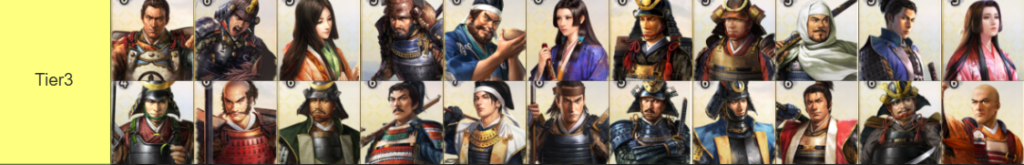 河田長親のように一部Tier3でもいいかなという武将はいますが、 現状は使い道がほとんどないのでTier4評価としています。 統率系武将や補助系武将は現状はまだ必要性が低いので この位置ですが、戦法が追加されれば使い道が生まれる可能性はあるかと思います