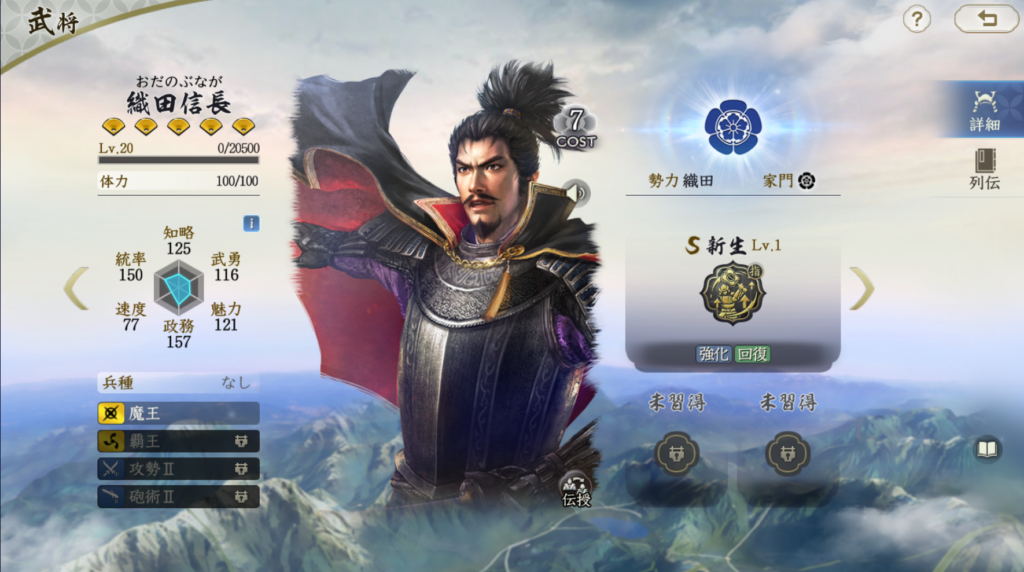 織田信長はアタッカーを強力に補助する武将です。 ダメージ増加率が個人的にはやや低いなあと感じますが、 それでも織田家は柴田勝家や明智光秀といった優秀なアタッカーがいるので 悪くはないともいます。三国志真戦ユーザーだと曹操と比べると かなり弱い印象ですが、曹操が強すぎるだけだと思うようにしましょう。