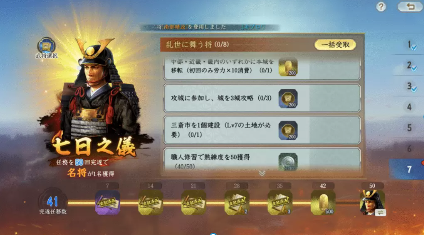 七日之儀で各任務をこなせば名将報酬が貰えるので、確実に手に入れることができます。