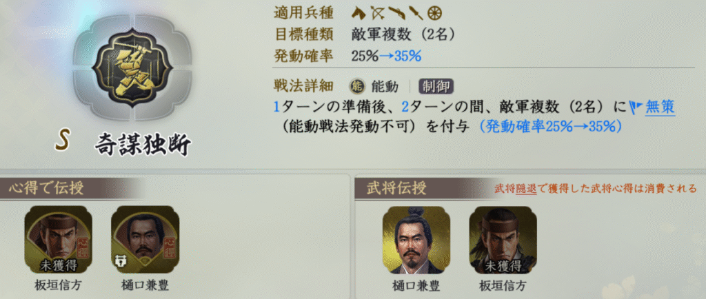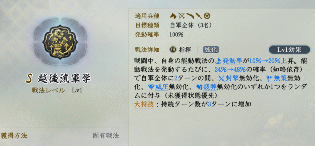 宇佐美定満固有戦法と合わせて、上杉家は制御耐性がやや強いのは〇