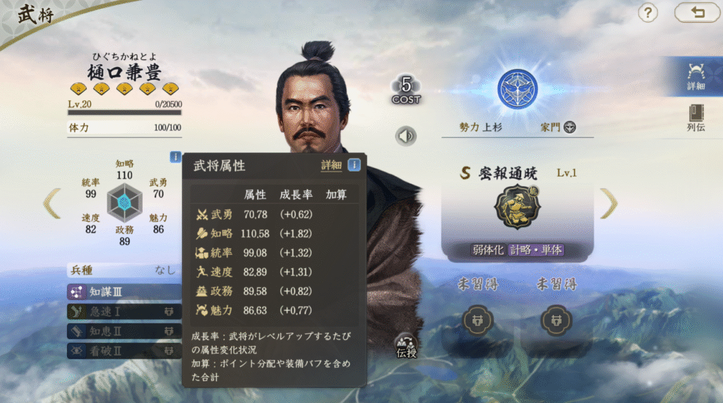 5凸:看破Ⅱ(計略被ダメージ-3.3%)