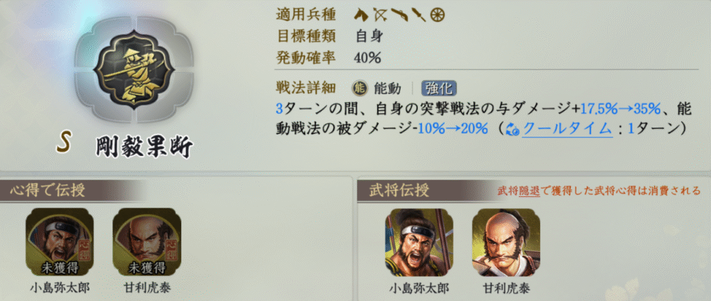 1凸:剛猛Ⅱ(自身が通常攻撃を受ける確率中幅上昇)