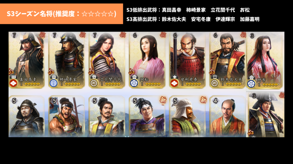 S3のシーズン名将ガチャラインナップ