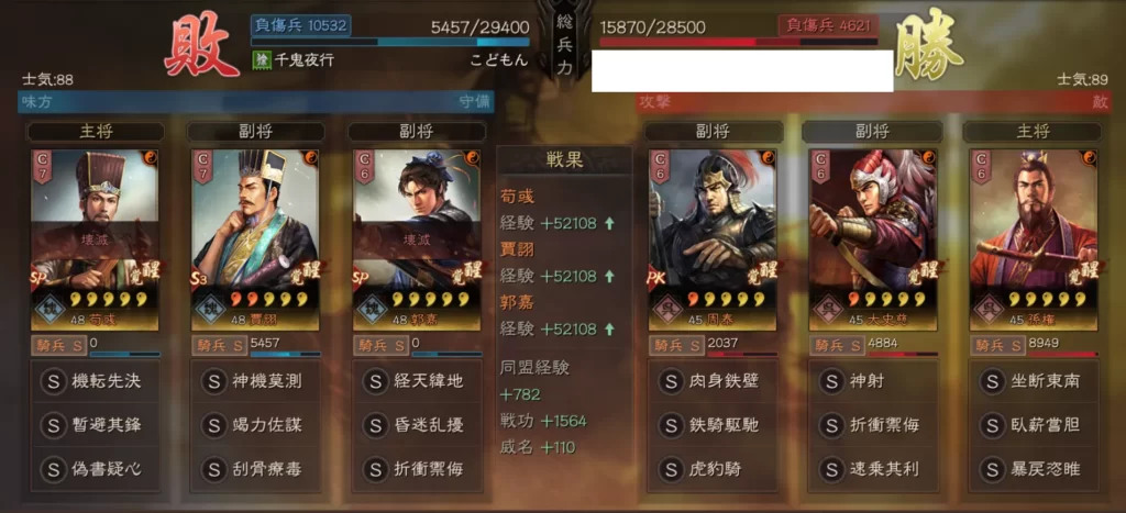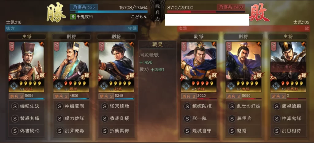 個人的には呂布三勢陣は兵損が多いため、なるべく対戦を避けていました。