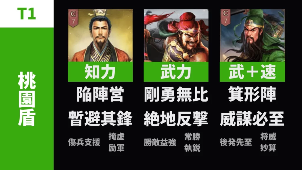 次は桃園盾です。桃園盾の重要性はあがったと考えています。編成強度はT1~2評価です。