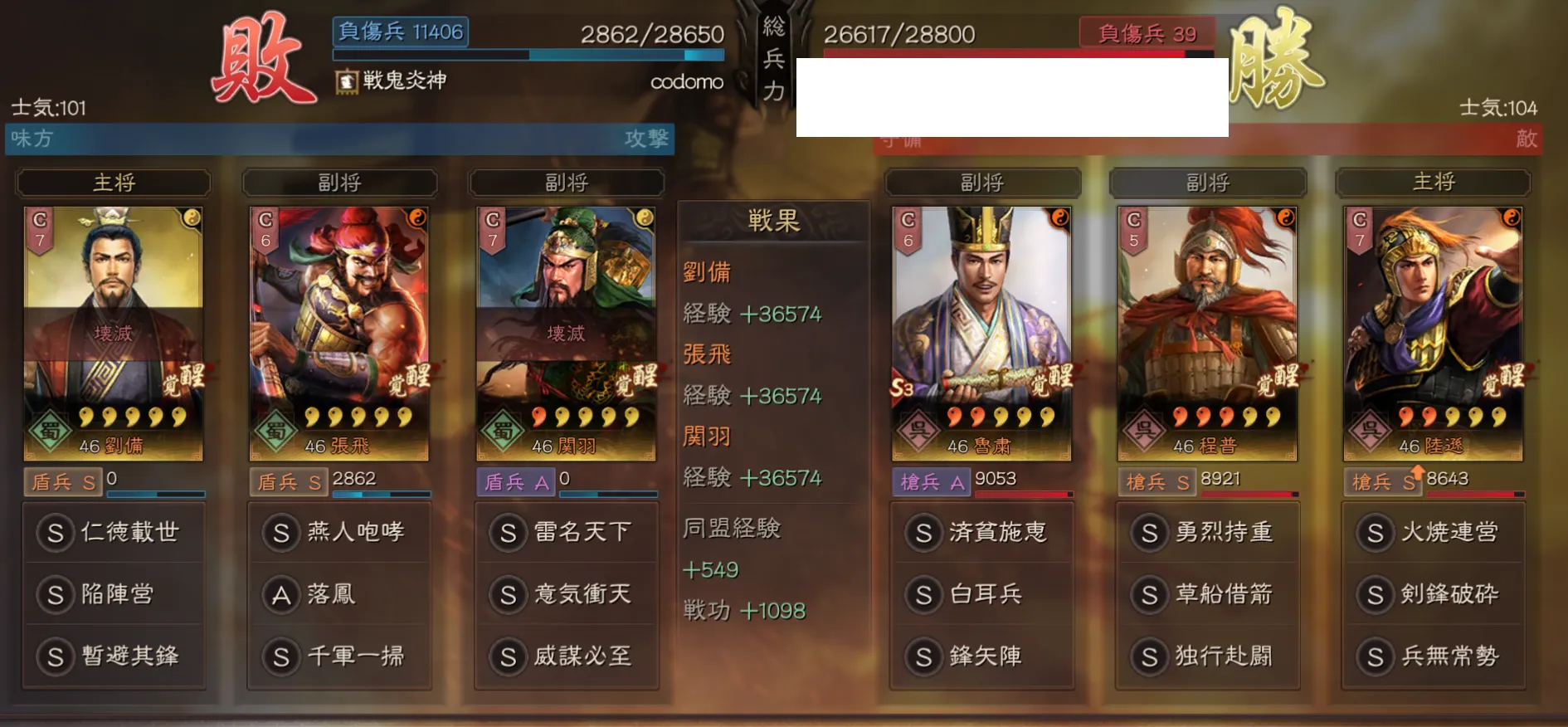 対槍は陸遜槍がメインでした。もっと勝てないかと思っていましたが、意外と善戦していると思いました。