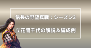 立花誾千代の固有戦法は火力・制御・回復が揃っています。この3点を最大化するには武勇を増加させる、麻痺状態を維持させることが編成のポイントになります。